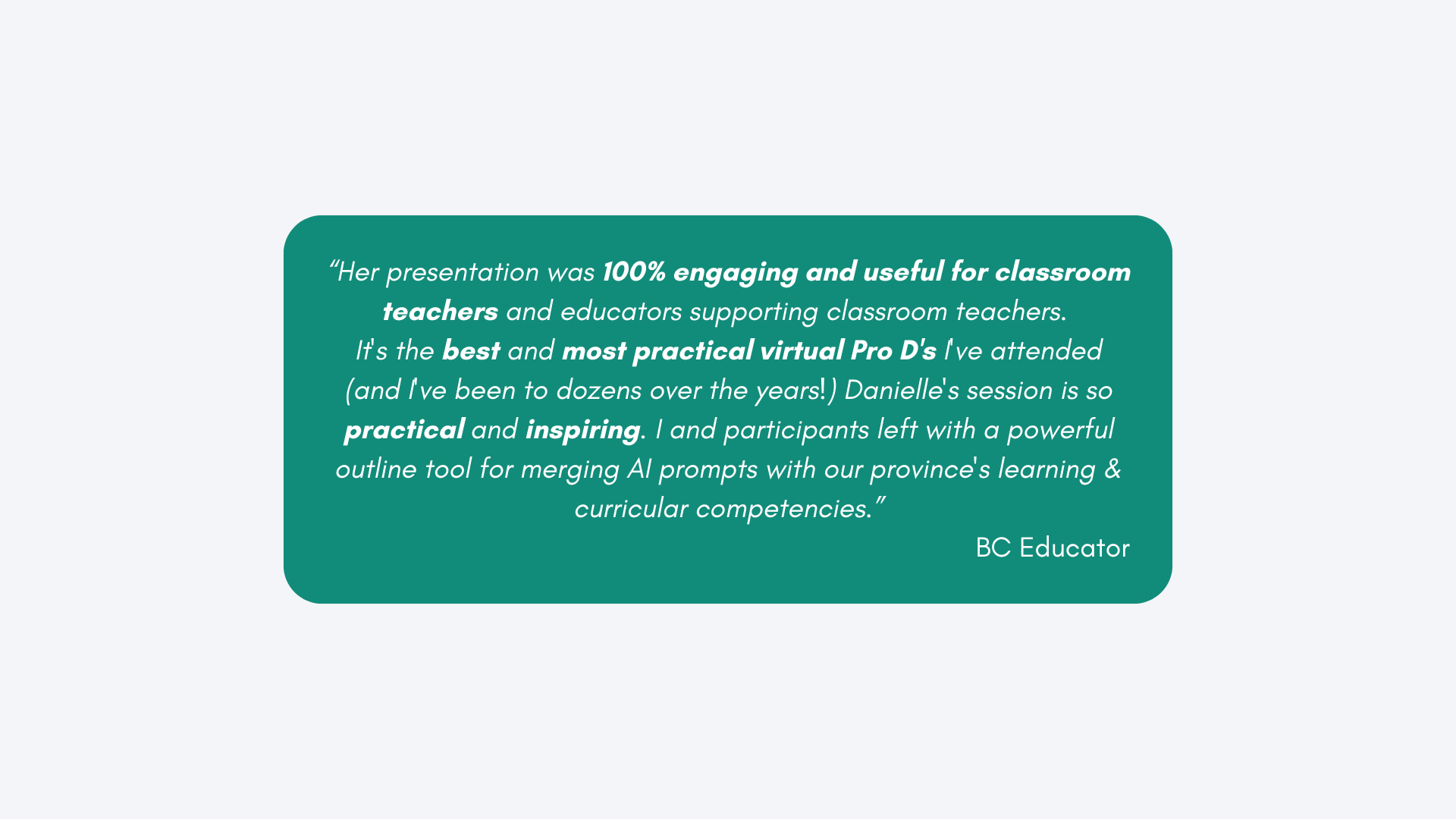 In this live webinar, discover how to use AI and smarter design to shift students from chasing grades to owning their learning. Led by veteran Canadian educator Danielle Paloposki, you’ll gain a practical, research-aligned approach to free up your planning time, build student confidence, and empower learners to do the heavy lifting, without adding hours to your workload.