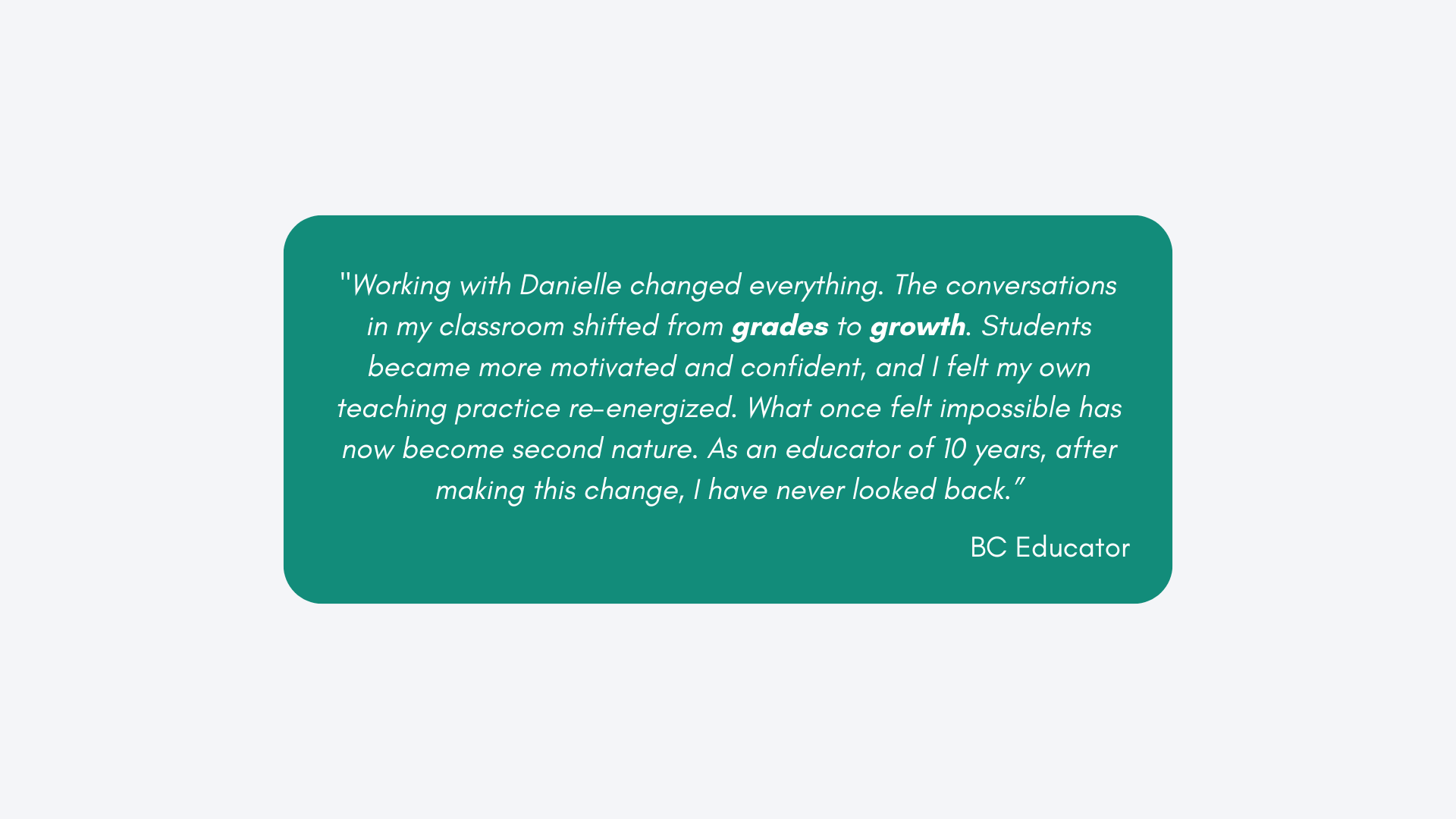 Through relatable classroom examples and classroom-tested moves, Danielle will guide you on how intentional assessment and learning design can help students feel capable, confident, and motivated again, while freeing up your time and ensuring students do the heavy lifting.